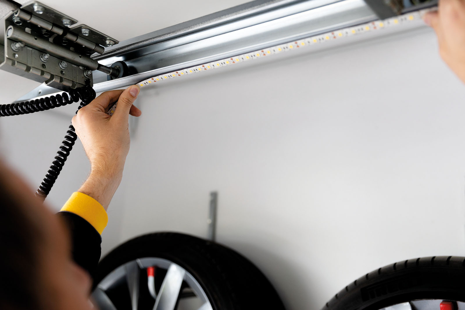 Ein weiteres Highlight ist unsere ergänzende LED-Garagenzusatzbeleuchtung. Die kannst du ganz einfach mit Magnetstreifen an der Metallkonstruktion der Garage montieren. Das Extralicht am Garagenhimmel lässt sich auch per Funk-Handsender einschalten, wenn du beispielsweise etwas suchst oder auch für das Ein- und Ausparken in die Garage.