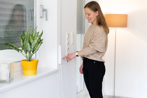 Werden die Tage wieder länger, lohnt sich ein Sonnensensor am elektrischen Gurtwickler. Verändert sich die Sonneneinstrahlung oder setzt die Dämmerung ein, übermittelt der Sonnensensor diese Veränderungen dem Gurtwickler. Die Rollläden werden dann entsprechend geöffnet oder geschlossen. So bleiben deine Räume auch bei Abwesenheit wohltemperiert.