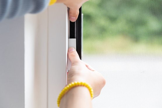 Das Fliegengitter anbringen.