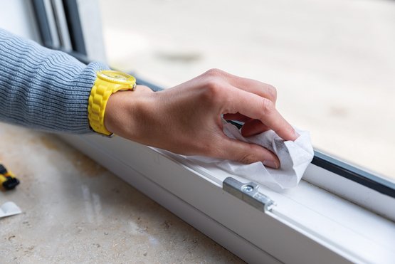 Den Fensterrahmen mit dem beiliegenden Reinigungstuch säubern.