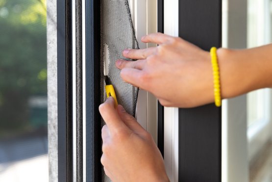 Die Überstände des Fliegengitters kannst du mit dem beiliegenden Cutter-Messer oder einer Schere sauber abschneiden.