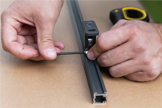 Führungsschienenhalter in den Schienen positionieren, festziehen und die Führungsschienen mit Endstopfen versehen.