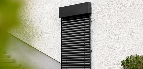 Unser Raffstore Komplett-Set sorgt für die regulierte Lenkung des Lichteinfalls und den eleganten Schutz vor unerwünschten Blicken. Als effektiver und hochwertiger Sonnenschutz schafft der Raffstore für dich ein angenehmes Raumklima. Dafür lassen sich die Lamellen dank dem integrierten, kraftvollen Schellenberg Raffstore-Motor bequem steuern. Den Raffstore-Motor PLUS gibt es übrigens auch zum Austausch an einem bereits bestehenden Raffstorebehang.
