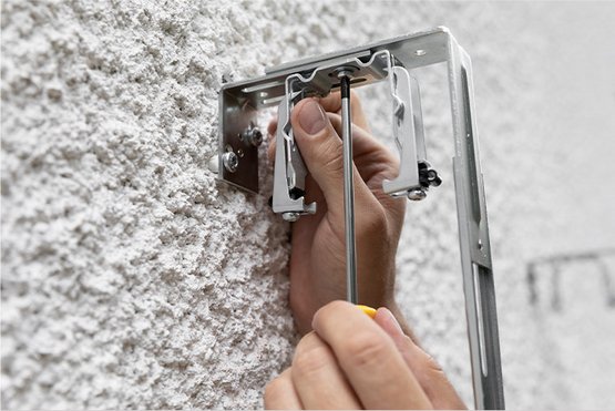 Montagebügel an Kastentiefe und Kastenhöhe angleichen und fixieren.