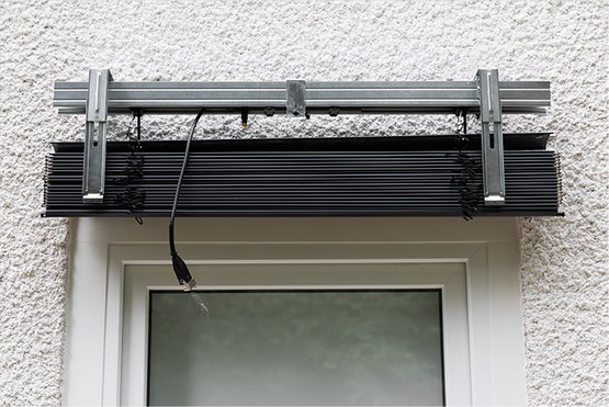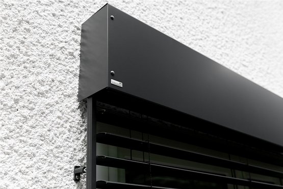 Wichtig sind die Platzverhältnisse zur Montage: Je nach Bestellgröße sollten 25 cm / 30 cm über dem Sturz vorhanden/verfügbar sein, damit die Kastenblende des Raffstores nicht in die Fensteröffnung ragt.
