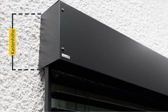 25 cm oder 30 cm für die Montage der Kastenblende hinzuaddieren. Das Ergebnis auf die nächste verfügbare Bestellhöhe aufrunden.