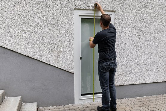 Lichte Höhe des Fensters oder der Tür messen. Tipp: Der Raffstore sollte nicht auf der Fensterbank aufliegen.