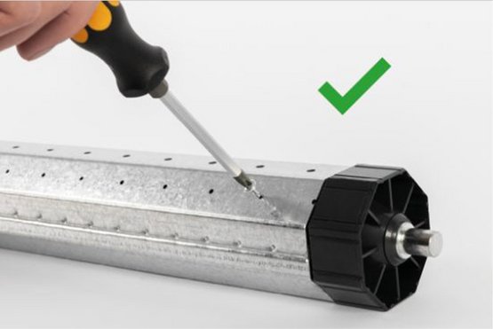 Wichtig: Der Rollladenmotor muss vollständig in der Achtkantwelle platziert sein. Auf keinen Fall Schrauben im Bereich des Motors eindrehen, da dies zu Beschädigungen führen kann.