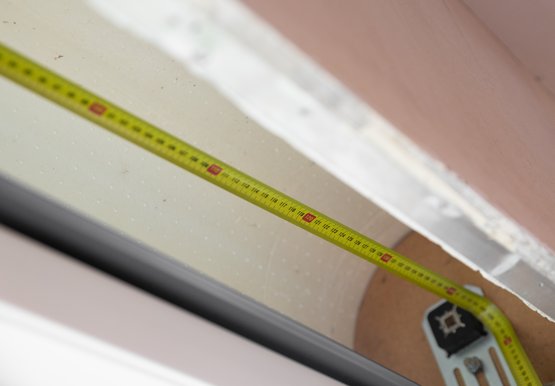 Zunächst misst du die Rollladenkastenbreite zwischen den beiden Wandlagern aus.