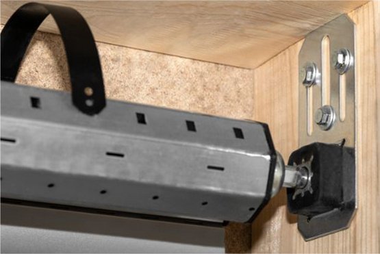 Zum Schluss noch die Rollladenaufhängungen in die Vierkantstanzungen der Rollladenwelle einhängen. Den überlappenden Bereich der Wellen dabei aussparen.