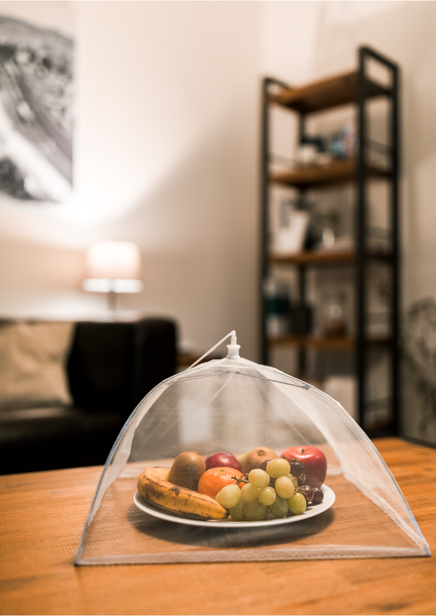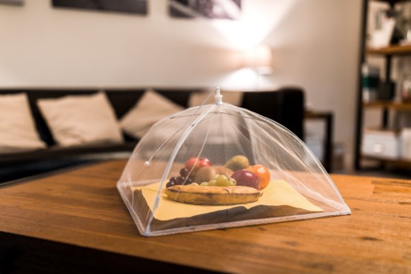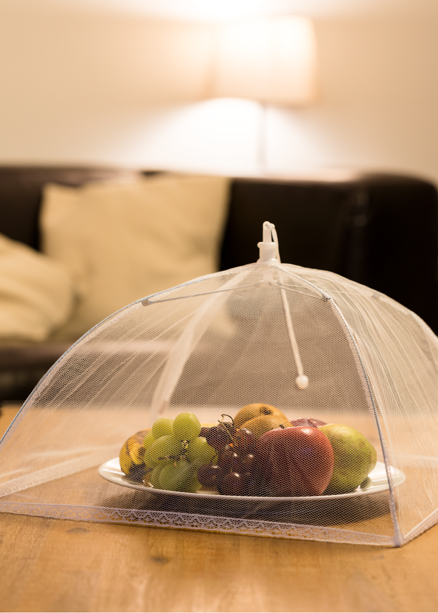 Ob Getränke, Käseplatte, Kuchen oder Gegrilltes, solche Leckerbissen haben Fliegen, Wespen und Co. bei ihren Landeanflügen immer im Visier. Insekten auf dem Essen sind nicht nur unappetitlich, sondern können auch krank machen. Die Stubenfliege besipielsweise ernährt sich unter anderem von Kadavern und Ausscheidungen. Die dort aufgenommenen Bakterien und Viren verteilt sie auf allen Oberflächen, auf denen sie landet. Mit der Schellenberg-Abdeckhaube für Lebensmittel bist du auf jeden Fall auf der sicheren Seite. Einfach aufklappen und über Speisen und Getränke stellen. Fertig, die Abwehr steht.