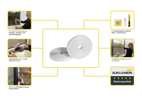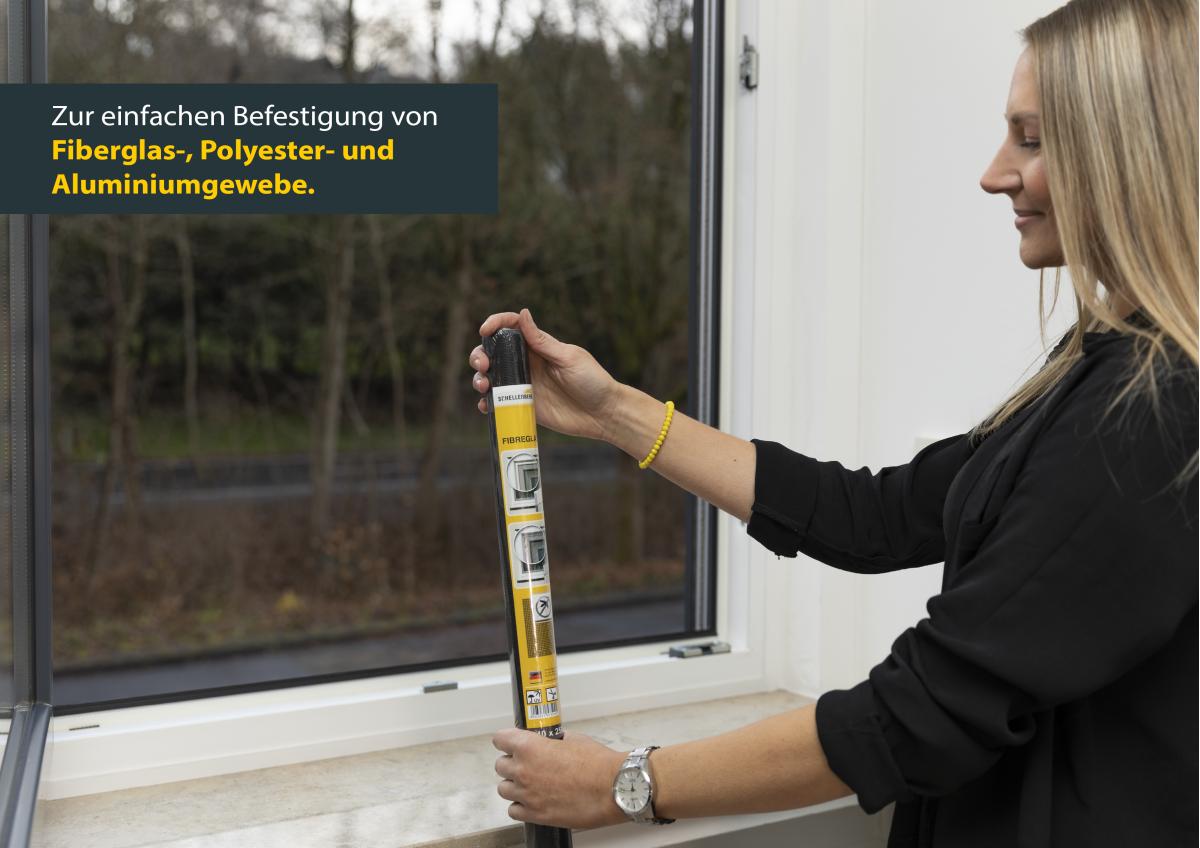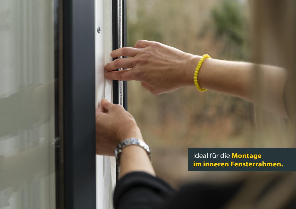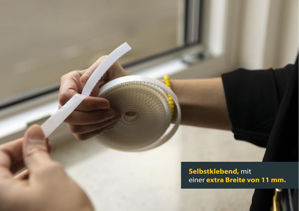 Mit unserem weißen Befestigungsband kannst du Fligengitter aus Polyester, Fiberglas und Aluminium ganz einfach und sicher befestigen - ganz ohne Bohren am Fenster oder am Türrahmen. Das nahezu unsichtbare Band passt sich jedem Fensterrahmen an, und du kannst es individuell kürzen. Das Anbringen erfolgt bequem durch einfaches Festdrücken. Und du kannst es ganz leicht wieder lösen, es ist also auch besonders praktisch für Mieterinnen und Mieter.