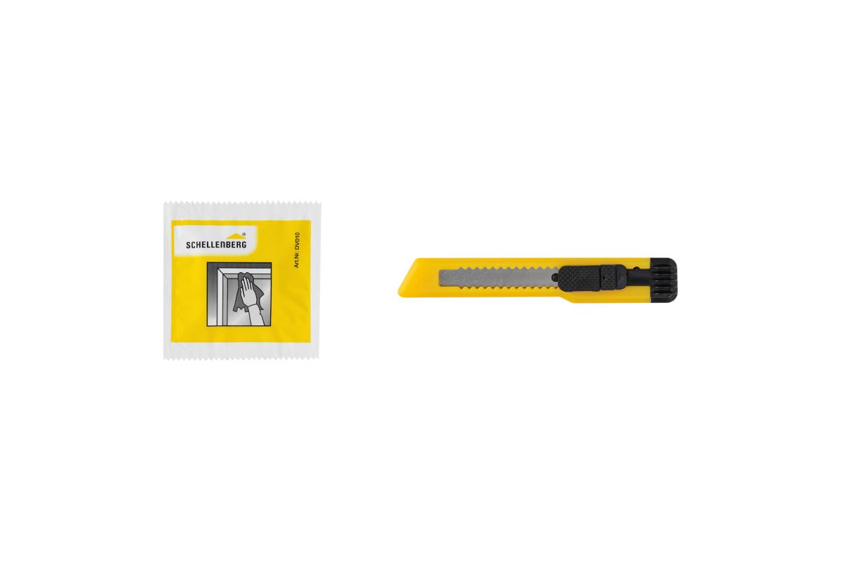 - inkl. Befestigungsband, Cutter-Messer und Reinigungstuch