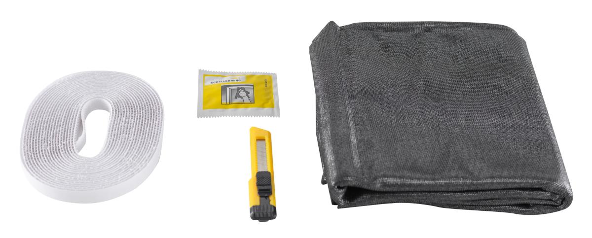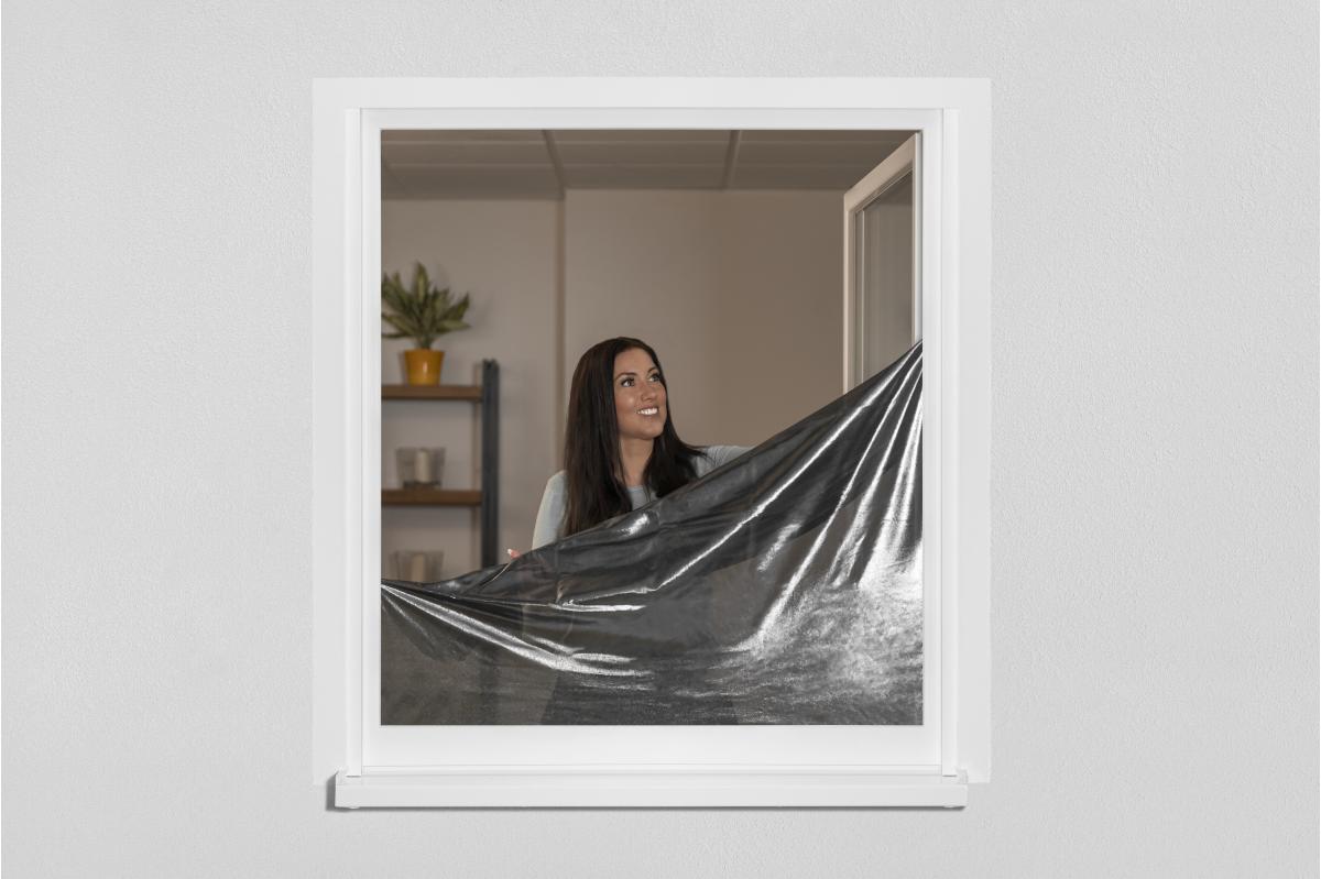 Das Gewebe mit den Maßen 130 x 150 cm lässt sich schnell und einfach mit dem mitgelieferten Befestigungsband montieren, ohne den Fensterrahmen zu beschädigen. Es ist UV-stabil, in Höhe und Breite individuell kürzbar und kann jederzeit abgenommen werden. Bei Bedarf kann es zudem bei 30°C gewaschen werden. Zum Lieferumfang gehören ein transparentes Befestigungsband, eine Eindrückbürste, ein Cutter-Messer und ein Reinigungstuch.