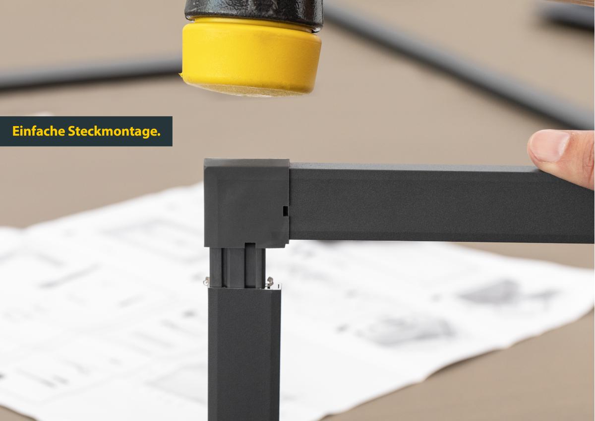 - Eckverbinder mit Einhängefedern in die Profile stecken.