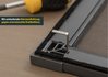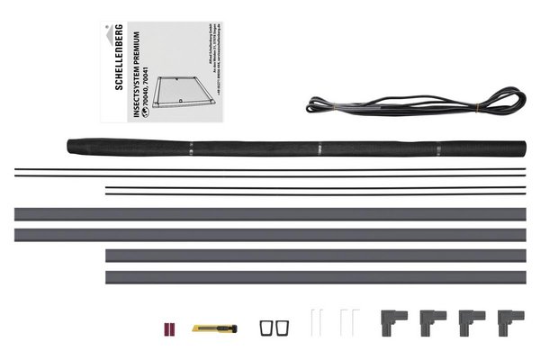 Dank des praktischen Komplett-Sets sind Anwendung und Anbringung des Fensters ganz einfach und bequem. Nachdem die Aluminium-Profile auf das benötigte Maß gekürzt wurden, werden die Rahmenelemente mit den beiliegenden Eckverbindern verbunden. Das KLARSICHT-Fiberglas-Gewebe wird anschließend mit dem Schlagkeder auf dem Rahmen fixiert und überstehendes Gewebe mit dem beigefügten Cuttermesser entfernt. Ganz ohne Bohren oder Schrauben kann der Rahmen mittels der Edelstahl-Einhängefedern ein- und wieder ausgehängt werden. Für eine nahezu lückenlose Abdichtung des Fensters verfügt der PREMIUM-Alurahmen zudem über eine optimierte Profilgeometrie, die einer ungewollten Profilbiegung entgegengewirkt.