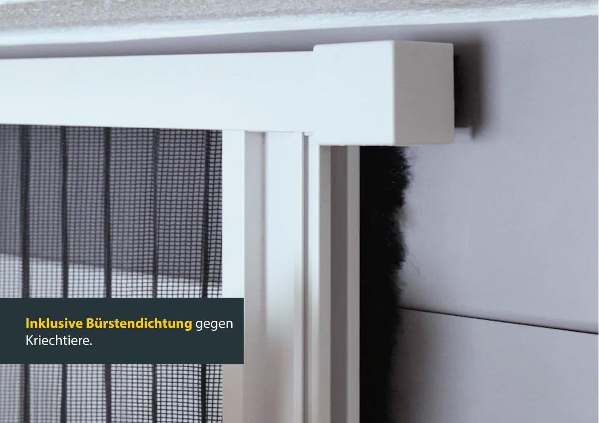 Für Balkon- oder Terrassentüren ist unser Plissee zum Auf- und Zuschieben ein flexibler und wirkungsvoller Insektenschutz. Das Komplett-System mit Aluminium-Rahmenprofilen und weißen, matt-sandierten Oberflächen lässt sich rechts- oder linksseitig einbauen. Dabei kannst du es wahlweise auf den Türrahmen mithilfe der Klebe- und Klickbefestigung ankleben oder festschrauben. Das zusätzlich benötigte Montagezubehör ist im Set enthalten. Weil das Plissee in dieser Farbgebung vom Auge kaum wahrgenommen wird, sorgt es für gute Durchsicht. Dank der umlaufenden Bürstendichtung bewahrt unser Insektenschutz-Plissee dein Zuhause auch vor kleineren Krabbel- und Kriechtieren.