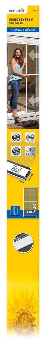 Die Schiebetür PREMIUM lässt sich dank der leichtgängigen Gleiter in der oberen Führungsschiene angenehm öffnen und schließen und hält Plagegeister wie Fliegen, Mücken und Fliegen zuverlässig fern. Das PREMIUM Aluminium-Rahmenprofil mit den Maßen 120 x 240 cm ist individuell kürzbar. Da die Schiebetür keinen Schwenkbereich benötigt, ist sie besonders platzsparend und passt zudem hinter die meisten Rollläden. Die umlaufende Bürstendichtung bietet zusätzlichen Schutz vor Kriechtieren. Auch optisch überzeugt die Schiebetür mit moderner Optik und die matt sandierte Oberfläche des Rahmens.