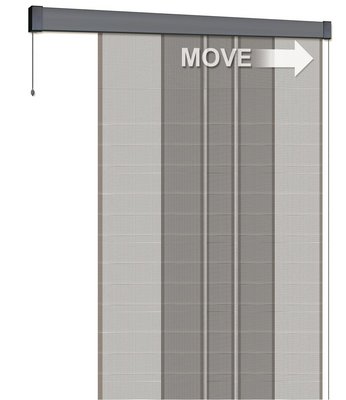 Zum praktischen Komplettset gehören fünf hochwertige Fiberglas-Lamellen und ein komfortables Seilzugsystem, das es ermöglicht, die Lamellen des Fliegengitters mit nur einer Hand nach links oder rechts zu ziehen, für einen zuverlässigen Schutz mit stets freiem Zugang. Der Insektenschutz Vorhang ist sowohl in Breite und Länge schnell und einfach auf die individuell benötigten Maße kürzbar und kann wahlweise durch Kleben oder Bohren montiert werden.