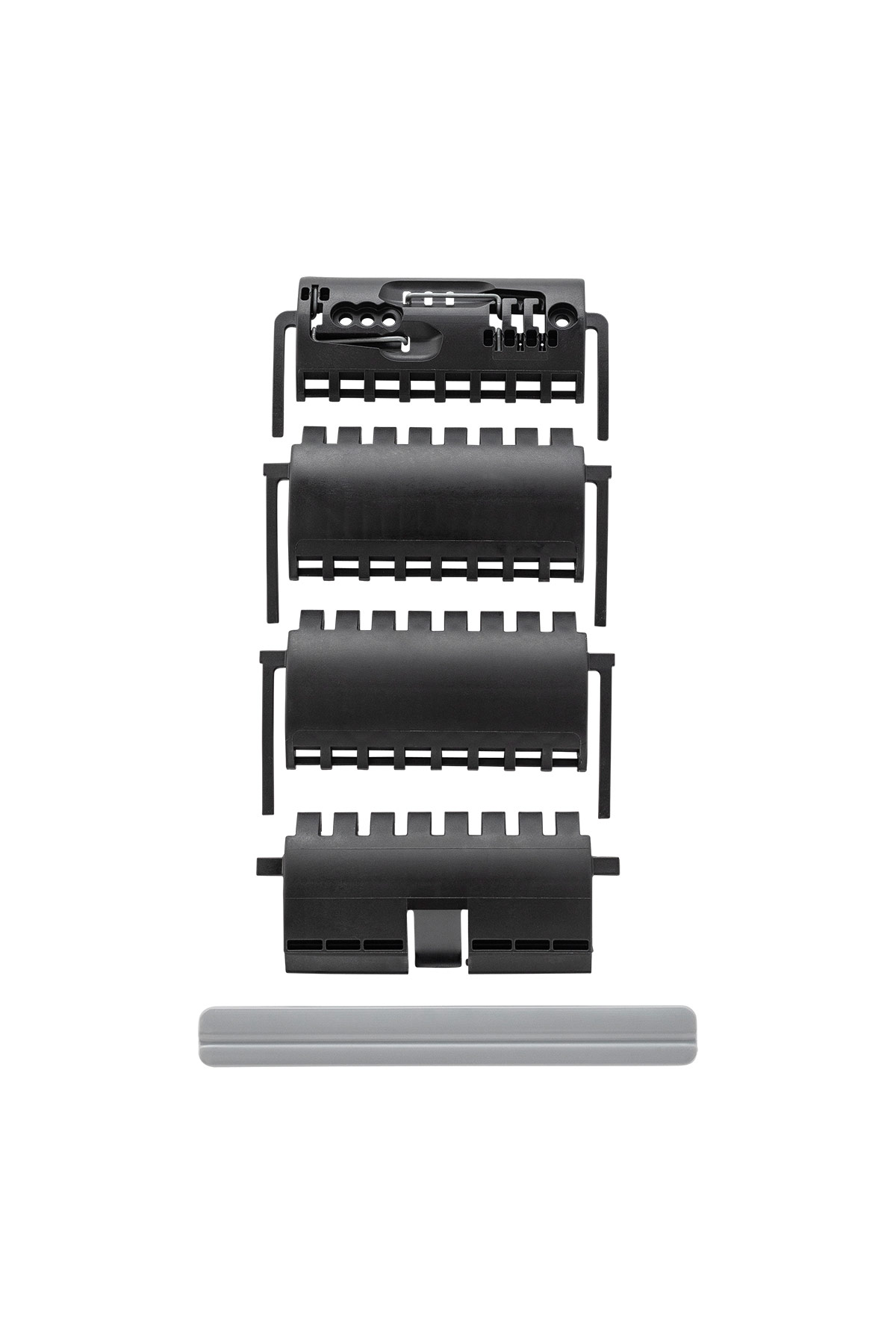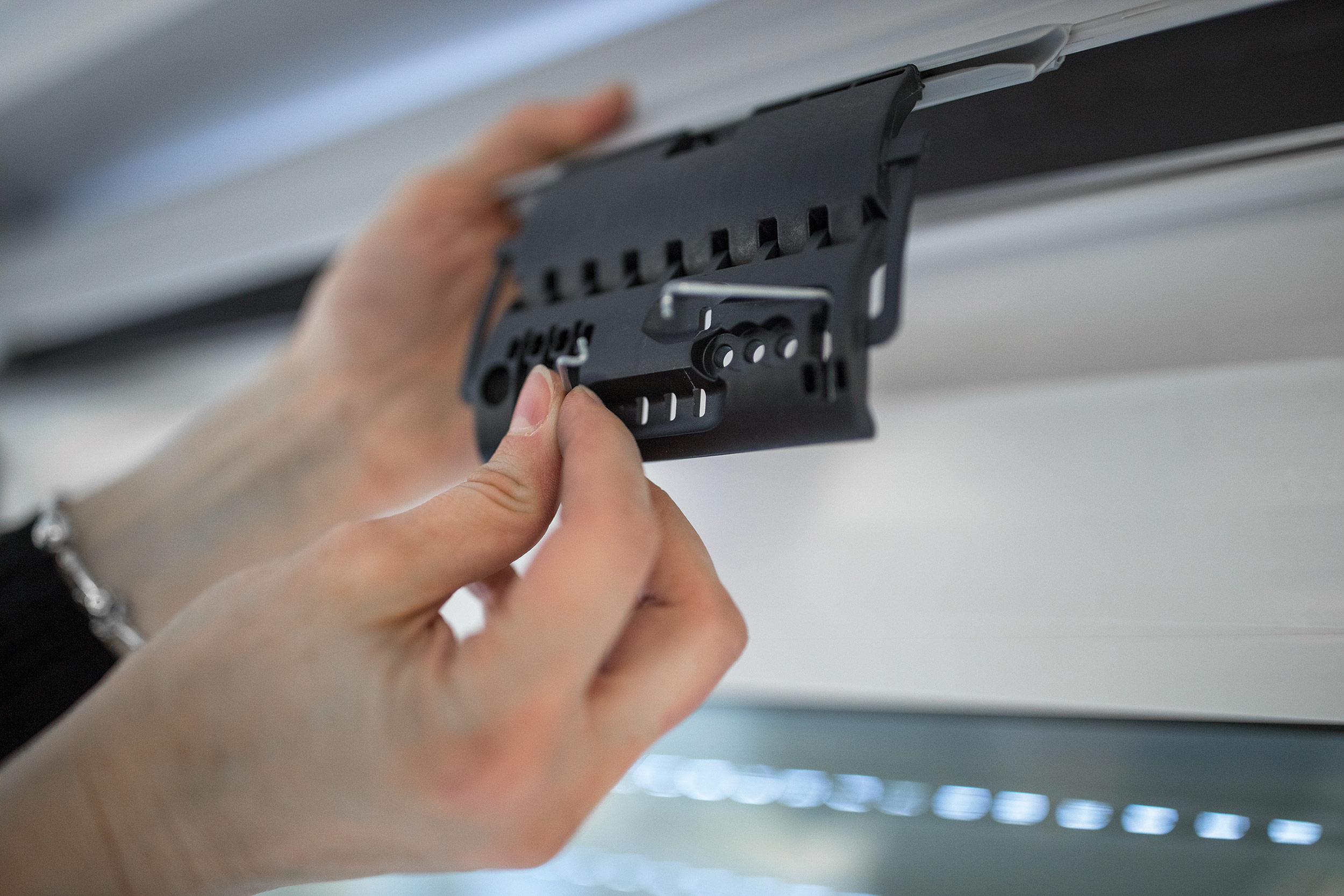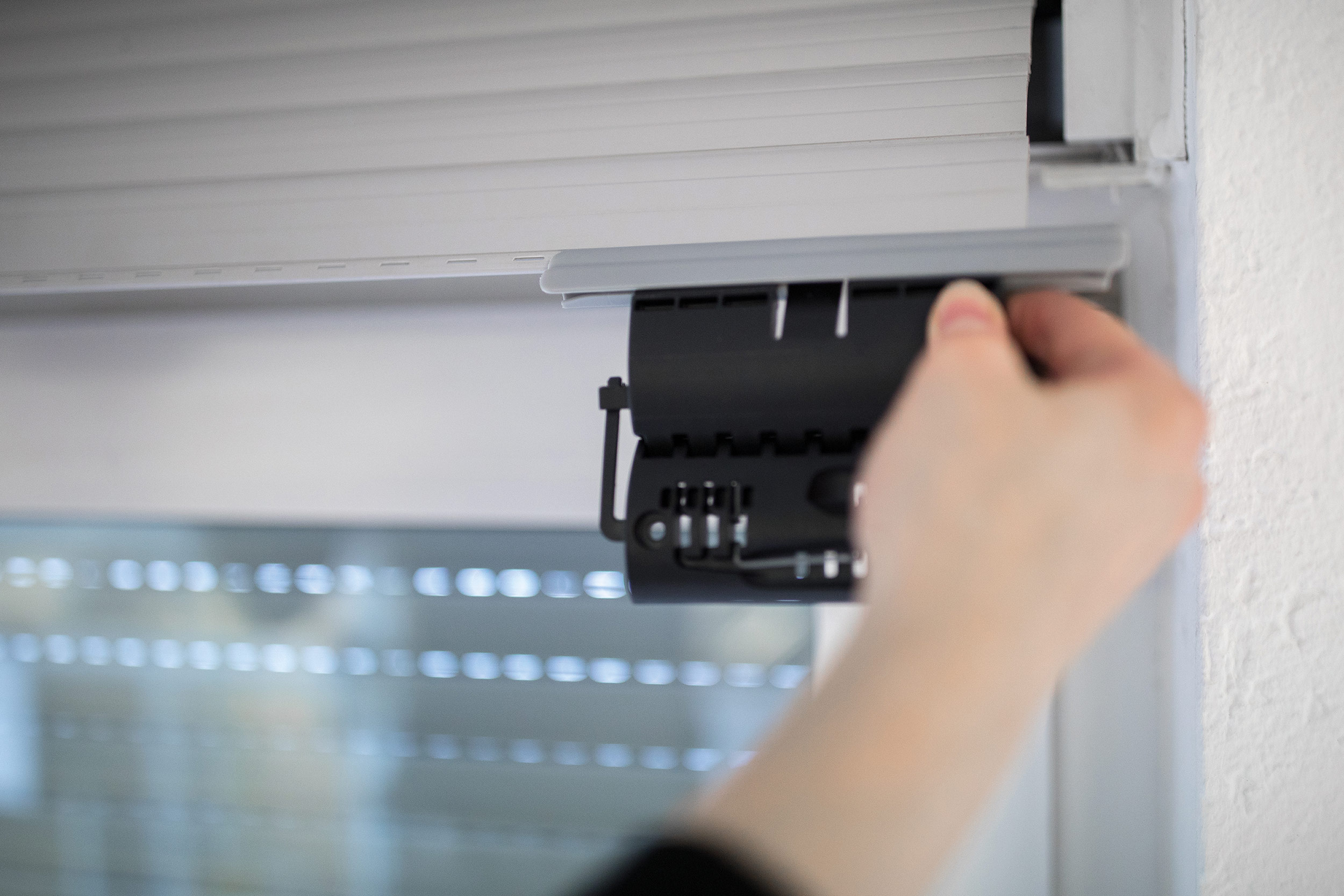 Entsprechend der jeweiligen Rollladenkastengröße lässt sich die Höhe der flexiblen Sicherung einstellen. Dafür können die einzelnen Glieder ganz einfach entfernt und bei Bedarf wieder einsetzt werden. Die clevere Verbindung per Scharnierprinzip sorgt für ein verbessertes Auf- und Abwickeln des Rollladens. Als praktisch für die Montage erweist sich ebenfalls der Profil-Aufnahmestab der Universal-Hochschiebesicherung. Er lässt sich seitlich leicht abziehen und umdrehen. So funktioniert die Aufhängung für Mini und Maxi Rollladenprofile von Schellenberg gleichermaßen.