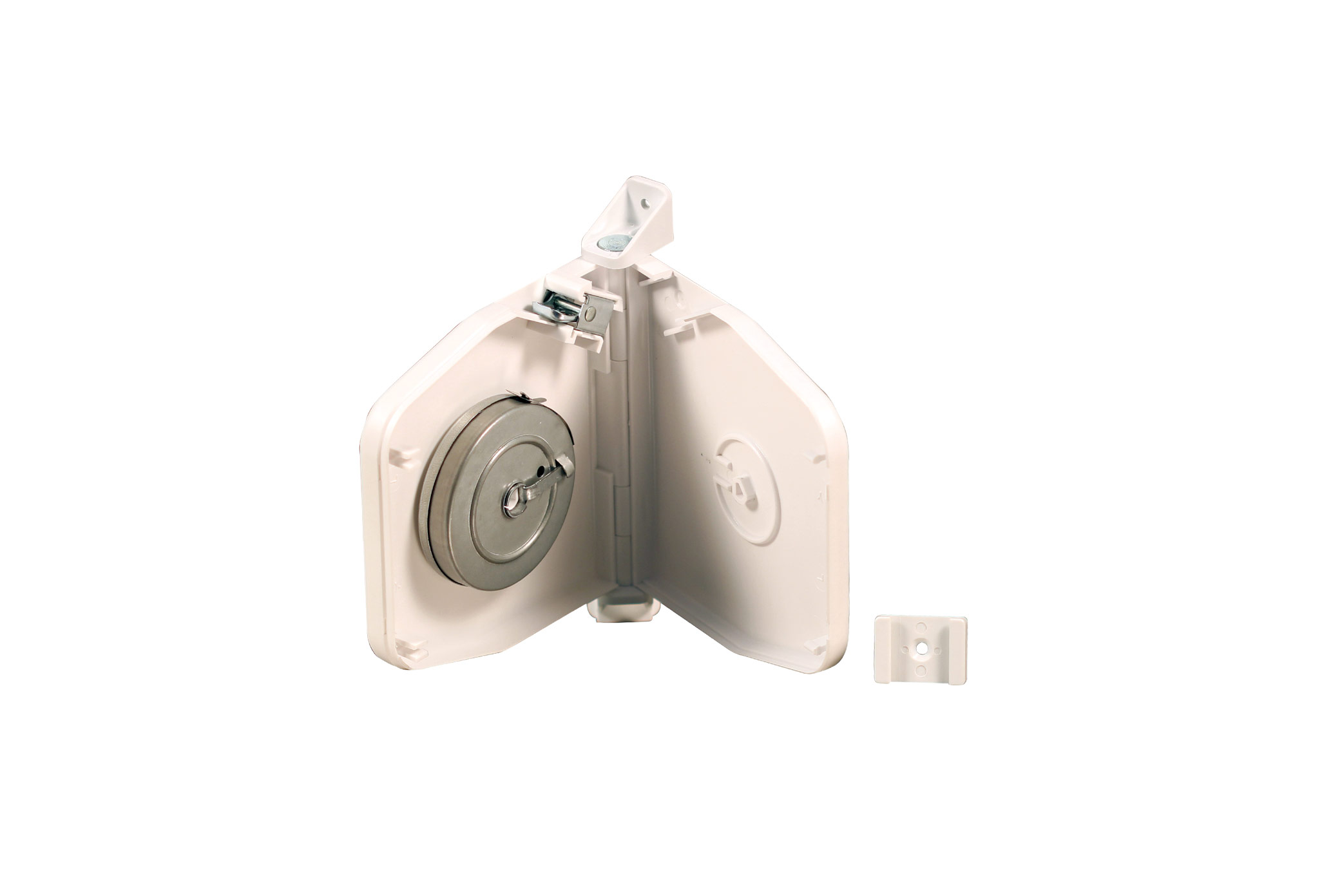 Die manuellen, um 180° schwenkbaren Aufschraubwickler der Serie „Flexo“, für Mini Rollladengurte (14 mm Breite) ermöglichen fließende Lochabstände von 140 bis 155 mm. Damit ist kein erneutes Bohren im Blendrahmen notwendig. Wahlweise in den Farben Weiß, Braun oder Anthrazit verfügbar, integriert sich der Wickler in jede Wohnumgebung. Durch das aufklappbare Gehäuse lassen sich die Aufschraubwickler mit dem bereits vorhandenen Rollladengurt verwenden. So können sie ohne Öffnen des Rollladenkastens montiert werden und sind ideal für kleinere Renovierungs- oder Reparaturarbeiten geeignet. Als Lösung für Türen und bodentiefe Fenster eignet sich der Aufschraubwickler Mini Flexo inklusive einem längeren Gurtband (7,0 m) und mit 150 bis 165 mm Lochabstand.