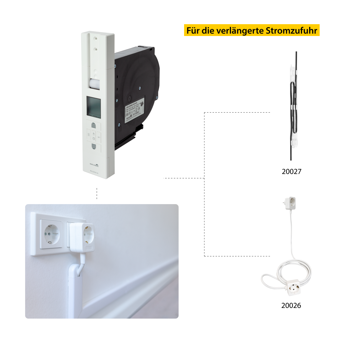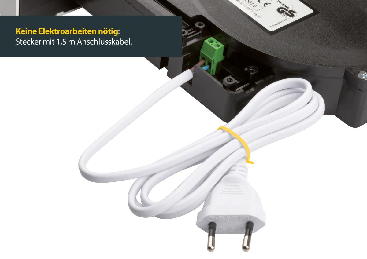 Das Urlaubs-Programm bzw. die Zufalls-Funktion des Schellenberg ROLLODRIVE 105 PLUS bietet einen zusätzlichen Schutz vor Einbrechern bei Abwesenheit und in der Urlaubszeit. Optional ist auch eine Lüftungsposition programmierbar. Bei einem Stromausfall bleiben alle Einstellungen auf der Steuerung gespeichert, außerdem verfügt der Antrieb über eine 8-stündige Gangreserve. Der ROLLODRIVE 105 PLUS wird per Unterputzmontage in den Mauerkasten eingebaut und ist sowohl für Neubauten als auch zum unkomplizierten Austausch manueller Einlasswickler geeignet. Ein Öffnen des Rollladenkastens ist nicht erforderlich! Die Stromversorgung erfolgt über den mitgelieferten Netzstecker, sodass bei der Montage keine Elektroarbeiten anfallen. Da sich der ROLLODRIVE 105 PLUS von Schellenberg schnell ein- und ausbauen lässt, ist er auch ideal für Mieter.