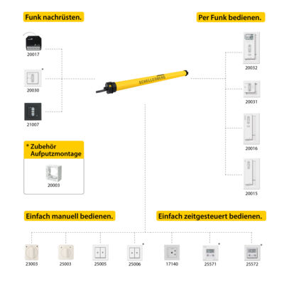 - Steuerung mit Rollladenschalter oder Zeitschaltuhr