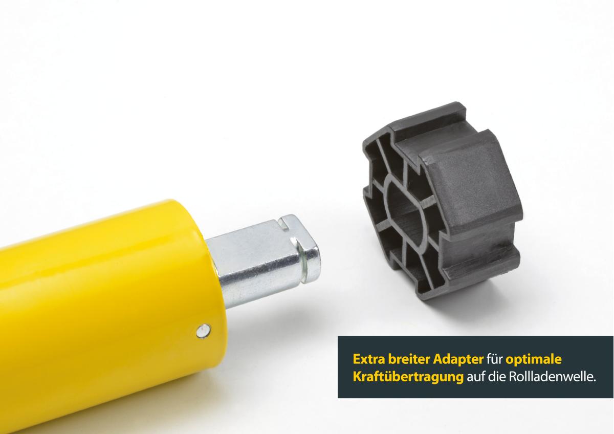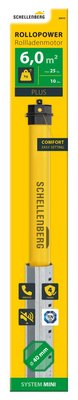 Mit einer max. Zugkraft von 25 kg und einem Drehmoment von 10 Nm ist der Rohrmotor Mini PLUS 10 von Schellenberg ein kraftvoller Rollladenmotor der Sorte PLUS, passend für Rollladenwellen mit 40 mm Durchmesser. Dies macht ihn zu einem starken Antrieb für Kunststoff-Rollläden mit einer Fläche von bis zu 6,0 m². Dieser Wert variiert je nach Material, Schwere und Bauart des Rollladens (Die maximale Zugkraft von 25 kg sollte nicht überschritten wird). Zum Lieferumfang gehört neben dem Motor auch der passende Adapter.