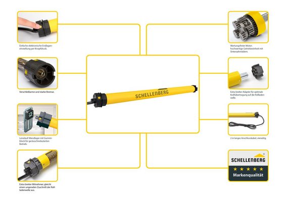 Alle PLUS Rohrmotoren von Schellenberg bieten optimalen Komfort bei der Einstellung der Rollladen-Endlagen, denn diese lassen sich unkompliziert per Knopfdruck festlegen. Das garantiert ein entspanntes Öffnen und Schließen von Rollläden mithilfe einer Zeitschaltuhr oder eines Rollladenschalters. Noch mehr Komfort bietet eine Funk-Steuerung, die jederzeit zu einem späteren Zeitpunkt nachgerüstet werden kann: per Funk-Rollladenschalter oder Funk-Empfangsmodul. Weitere Pluspunkte: Der Rohrmotor verfügt über einen thermischen Überlastungsschutz und eine Schutzfunktion, die dafür sorgt, dass alle eingestellten Daten auch bei Stromausfall erhalten bleiben.