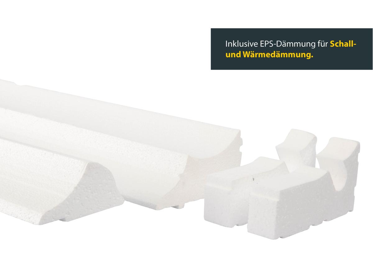 - integrierte EPS-Dämmung für optimalen Schall- und Wärmeschutz