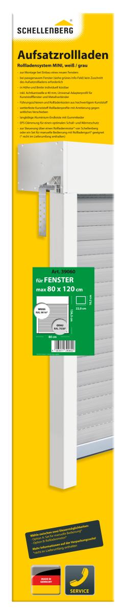 Neu Aufsatzrollladen für Fenster max. 80 x 120 cm, weiß/grau