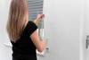 - Bei manueller Bedienung die beiliegenden Anschlagstopfen an der Alu-Endleiste anbringen, um ein vollständiges Einziehen des Rollladens in den Rollladenkasten zu verhindern. Dazu vor dem Einführen des Panzers in die Führungsschienen ein entsprechendes Loch bohren. Nach dem Einführen des Panzers die Unterlegscheibe von innen über dem Loch platzieren, Schraube einführen, Anschlagstopfen von außen aufsetzen und von innen festschrauben.