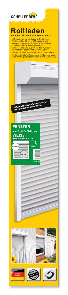 Dieses Schellenberg Rollladen-Set ist die universelle Komplett-Lösung, wenn du Rollläden selbst nachrüsten möchtest. Es eine Breite von 130 cm und eine Höhe von 140 cm. Die entsprechenden Bauteile lassen sich in der Höhe und Breite individuell kürzen, sodass sie einfach an deine Fenstermaße angepasst werden können. Bitte wähl ein Komplett-Set aus, dessen Maße größer sind als die Maße deines Fensters!