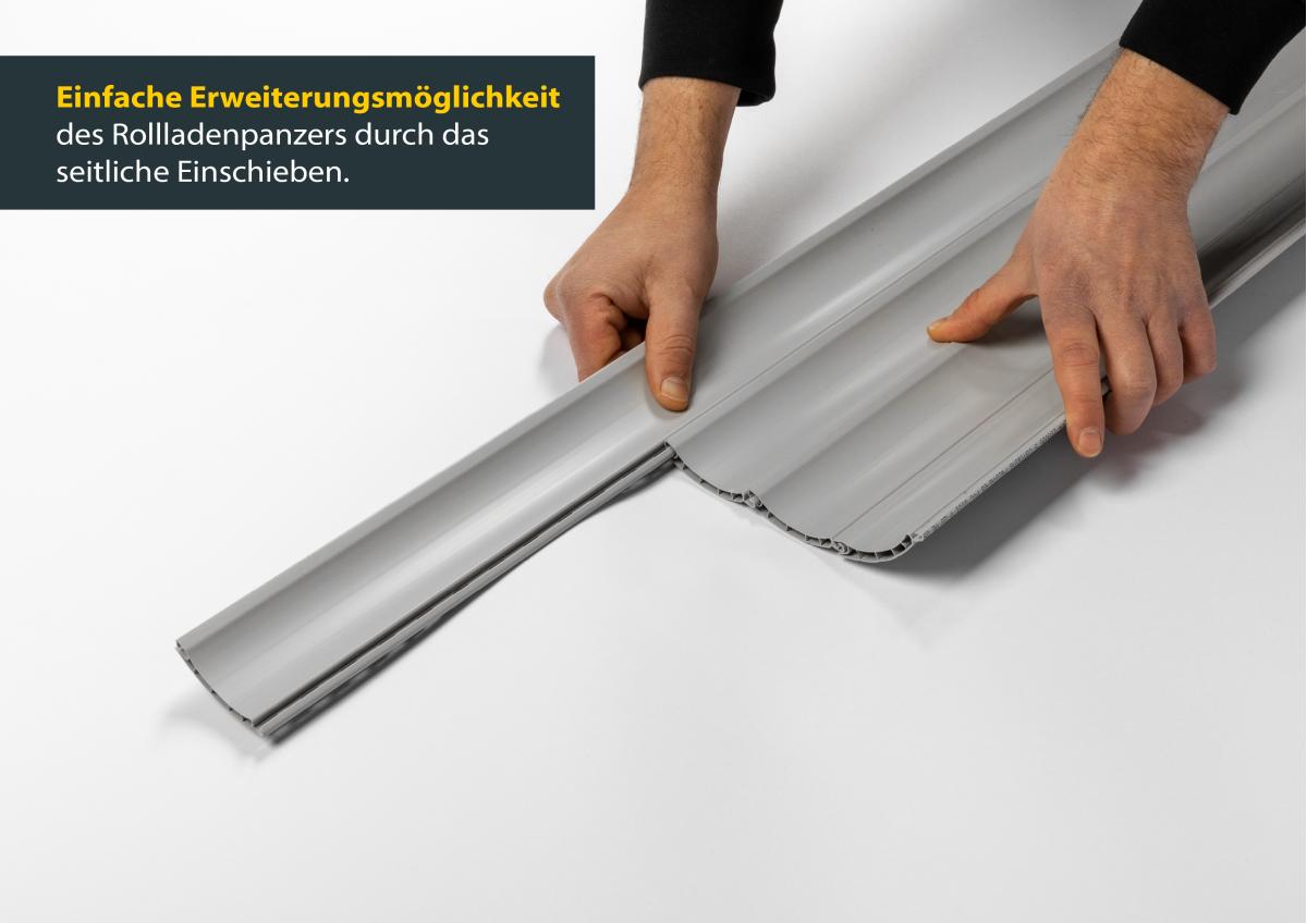 - einfache Erweiterungsmöglichkeit des Rollladenpanzers durch das seitliche Einschieben