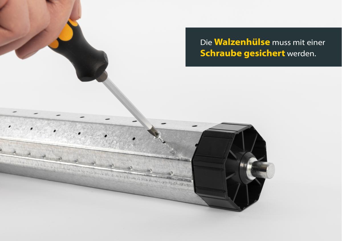 - Schiebe die Walzenhülse in die Achtkantwelle.