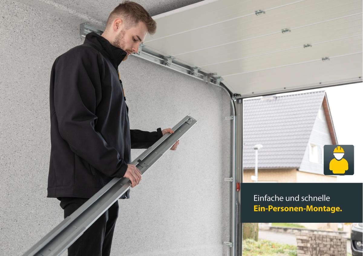 - 1-Personen-Montage, größtenteils vormontierter Antrieb und Montagevideo