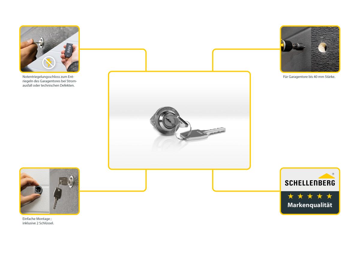 Mit dem Notentriegelungsschloss von Schellenberg lässt sich ein elektrisch betriebenes Garagentor im Handumdrehen manuell öffnen - ideal bei Stromausfall oder technischen Störungen, insbesondere wenn kein separater Zugang zur Garage vorhanden ist. Die clevere Lösung bietet maximale Sicherheit: Die Einbruchschutzfunktion der Garage bleibt vollständig erhalten. Geeignet für Garagentore mit einer Stärke von bis zu 40?mm, sorgt das Notentriegelungsschloss für ein gutes Gefühl - auch im Ausnahmefall.